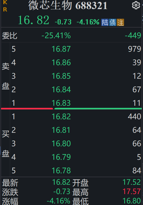 7月23日,微芯生物股價收於16.82元/股,跌幅4.16%。