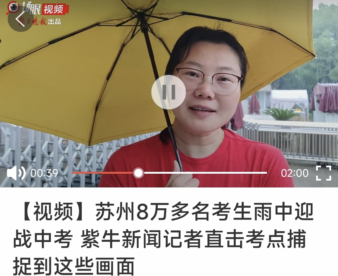 揚子晚報/紫牛新聞記者找到了這篇刊發於2021年6月17日亚博体育 彩票 中考首日的新聞報道《亚博体育 彩票 8萬多名考生雨中迎戰中考 紫牛新聞記者直擊考點捕捉到這些畫麵》,視頻裏,身穿紅色衣服的姚女士撐著傘接受記者采訪,麵對鏡頭,她說出了對孩子的祝福:“樂樂加油,中考必勝!希望你能達成願望,考入自己理想的高中!”