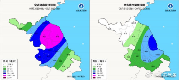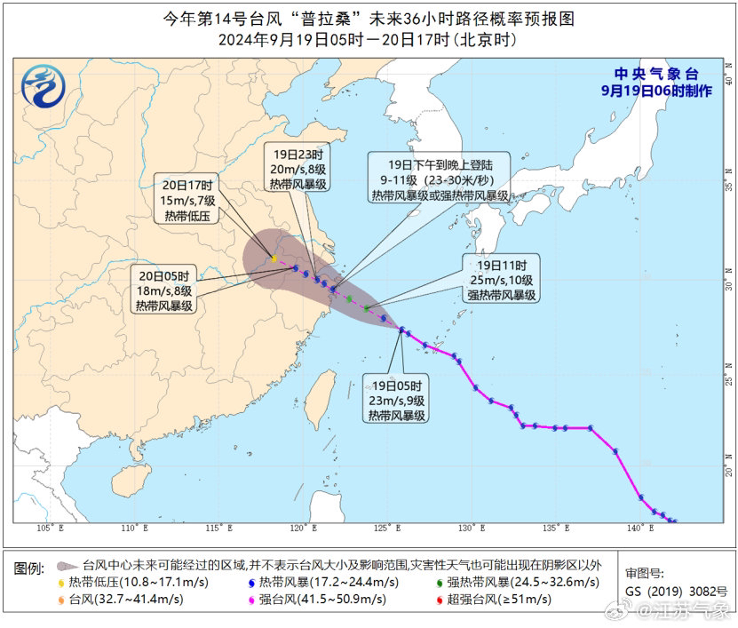 預計台風“普拉桑”19 日中午前後開始影響江蘇,沿江和蘇南地區中到大雨,局部暴雨;最強降雨時段在 20日-21 日,我省大部分地區有大到暴雨、部分地區大暴雨。