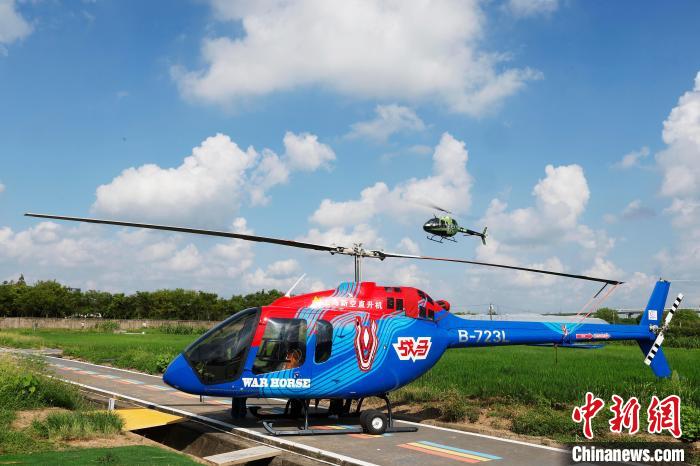 8月18日,一架直升機搭載兩名旅客,從昆山城市航站樓東廣場起飛,按照既定航線向上海浦東國際機場方向高速駛去。經過28分鍾的飛行,直升機降落在上海浦東星野飛行基地,再由浦東機場地麵服務專車轉送至民航航班。這標誌著昆山城市航站樓至上海浦東國際機場的“空空聯運”項目直升機首航圓滿成功。圖為直升機降落在上海浦東星野飛行基地。中新網記者 殷立勤 攝