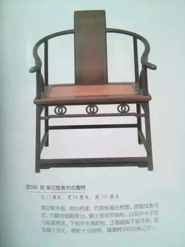 胡德生的《故宮文物二十四講》中,曾提到過的椅子,更有一種圈椅的靠背板高出椅圈,並稍向後卷,可以搭腦,在就坐時感覺十分舒適自如。所以,這隻是圈椅的一種另外形式,也屬於圈椅的一種。