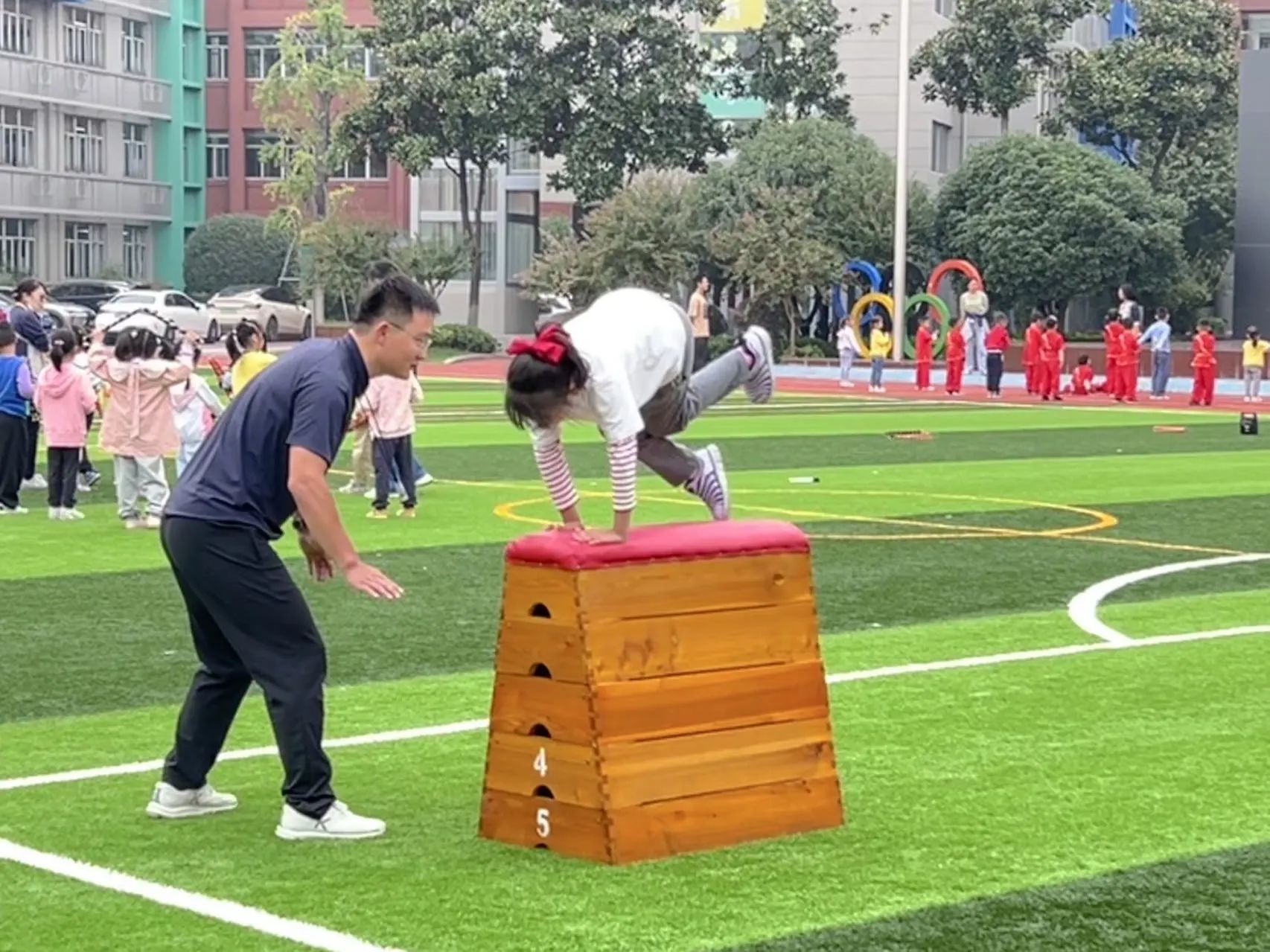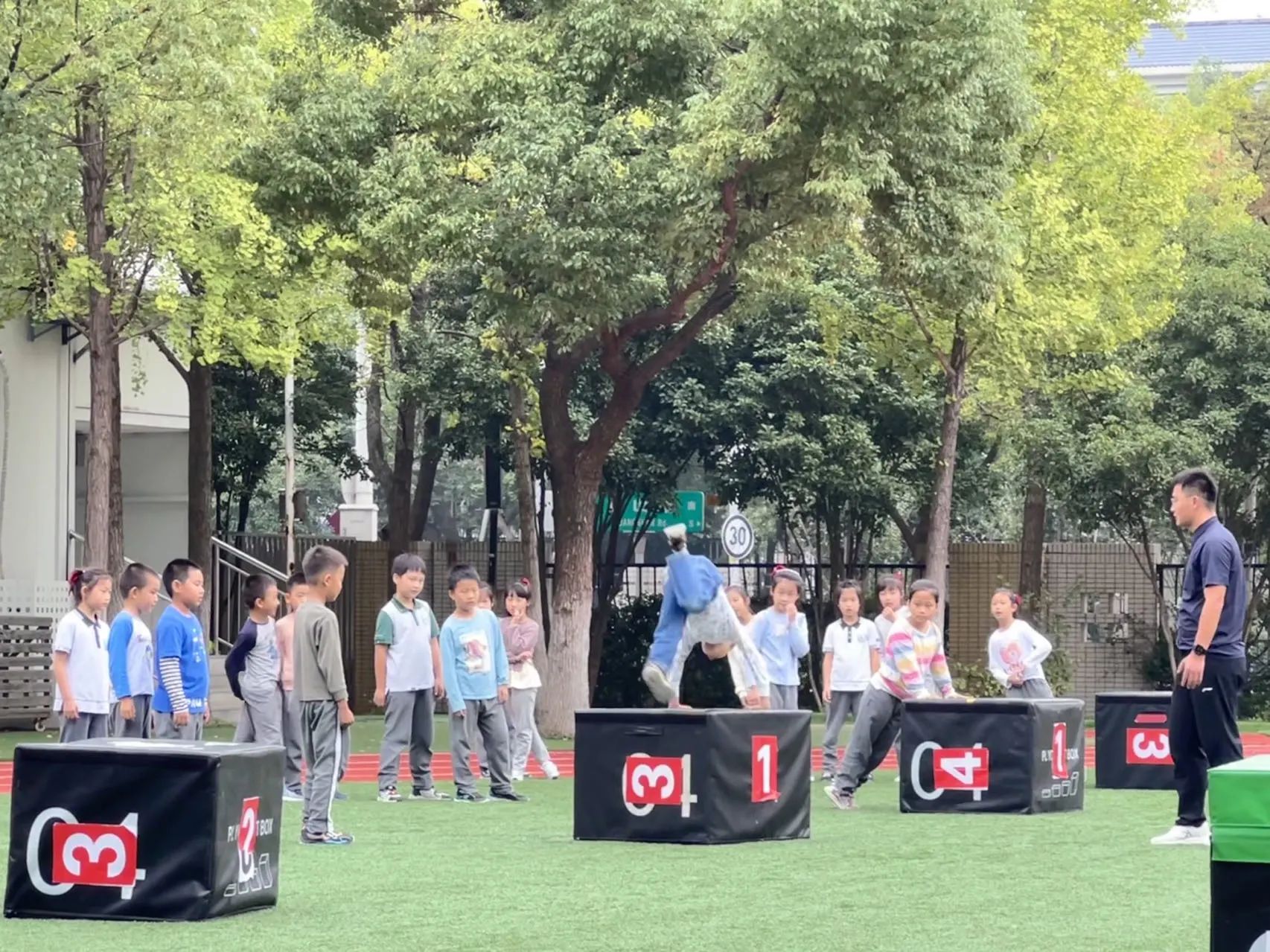 在課堂展示環節中,侯春雨老師展示了一節生動有趣的攀爬課。課堂上擺放的各種顏色的跳箱吸引了學生的目光。隨著音樂的響起,孩子們上課情緒瞬間高漲,跟著老師一起參與到“躲貓貓”“打地鼠”的遊戲中,隨後又嚐試用自己的方法爬越跳箱,侯老師用自己優美的示範向學生們展示了獨特的方法,並開始了由簡到難的攀爬動作學練。