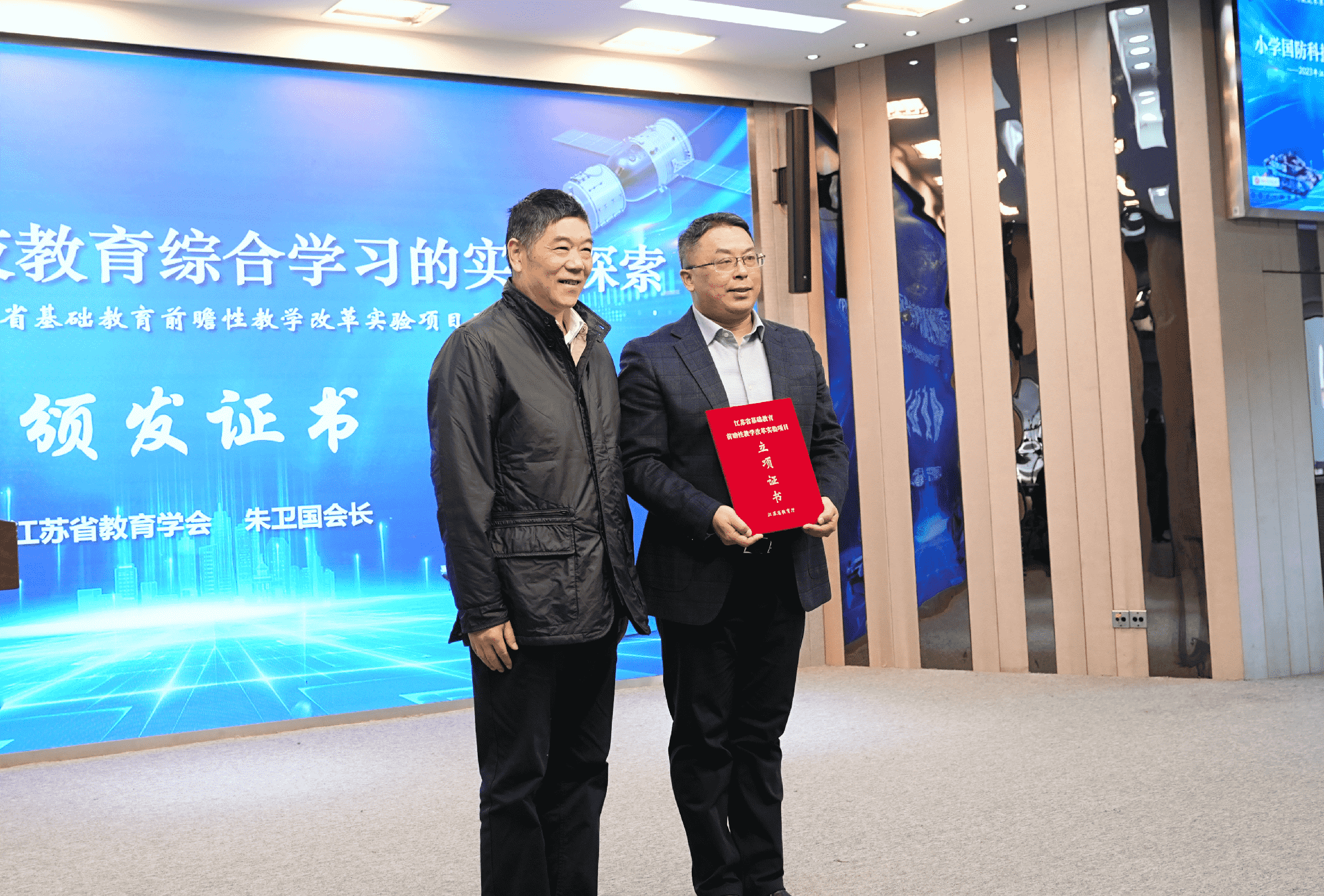 11月20日,2023年江蘇省基礎教育前瞻性教學改革實驗項目現場會在南京市小營小學舉行。記者在現場了解到,小營小學以《小學國防科技教育綜合學習的實踐探索》成功立項江蘇省基礎教育前瞻性教學改革實驗一類重大項目,江蘇省教育學會會長朱衛國現場為學校頒發立項證書。