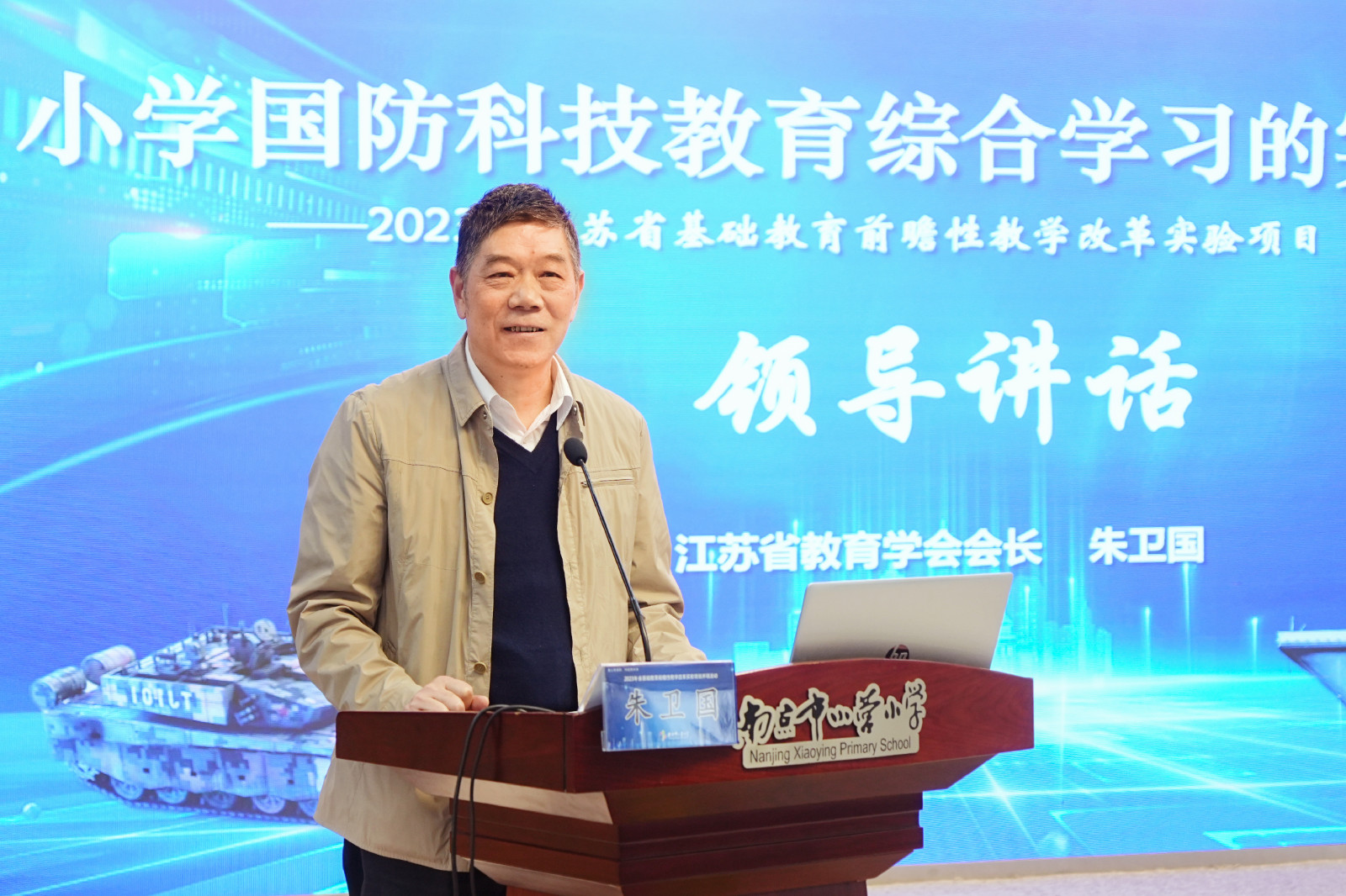 “小營小學本次成功申報了前瞻性項目,既是對‘為黨育人,為國育才’的切實回應,也是學校內部發展的一次挖掘,具有時代性。”江蘇省教育學會會長朱衛國在講話中提出三點建議,首先希望研究團隊進一步理清項目要解決的問題,以問題為導向,將項目推進與學生的成長結合起來;其次,要進一步將項目研究的內容體係化;最後,要努力成為優秀的項目,努力形成優秀的項目成果,在結項時有可借鑒的課程設置、可複製的課堂樣片和可參考的國防科技活動,培養創新人才。