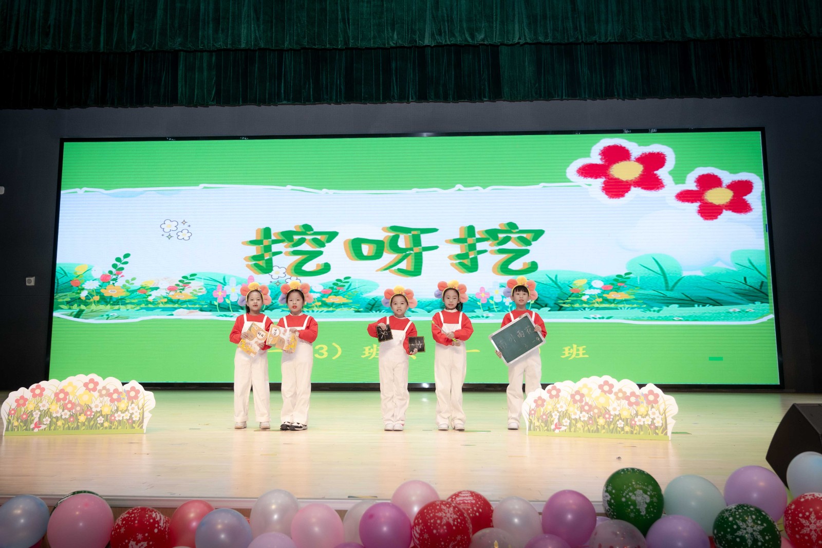 與《哈尼寶貝》有異曲同工之妙的,是一年級的唱跳表演《挖呀挖》,旋律簡單、歌詞朗朗上口的表演一登場便引起全場合唱,台下的孩子們全情投入,無形中感受到了“演唱會同款快樂”。