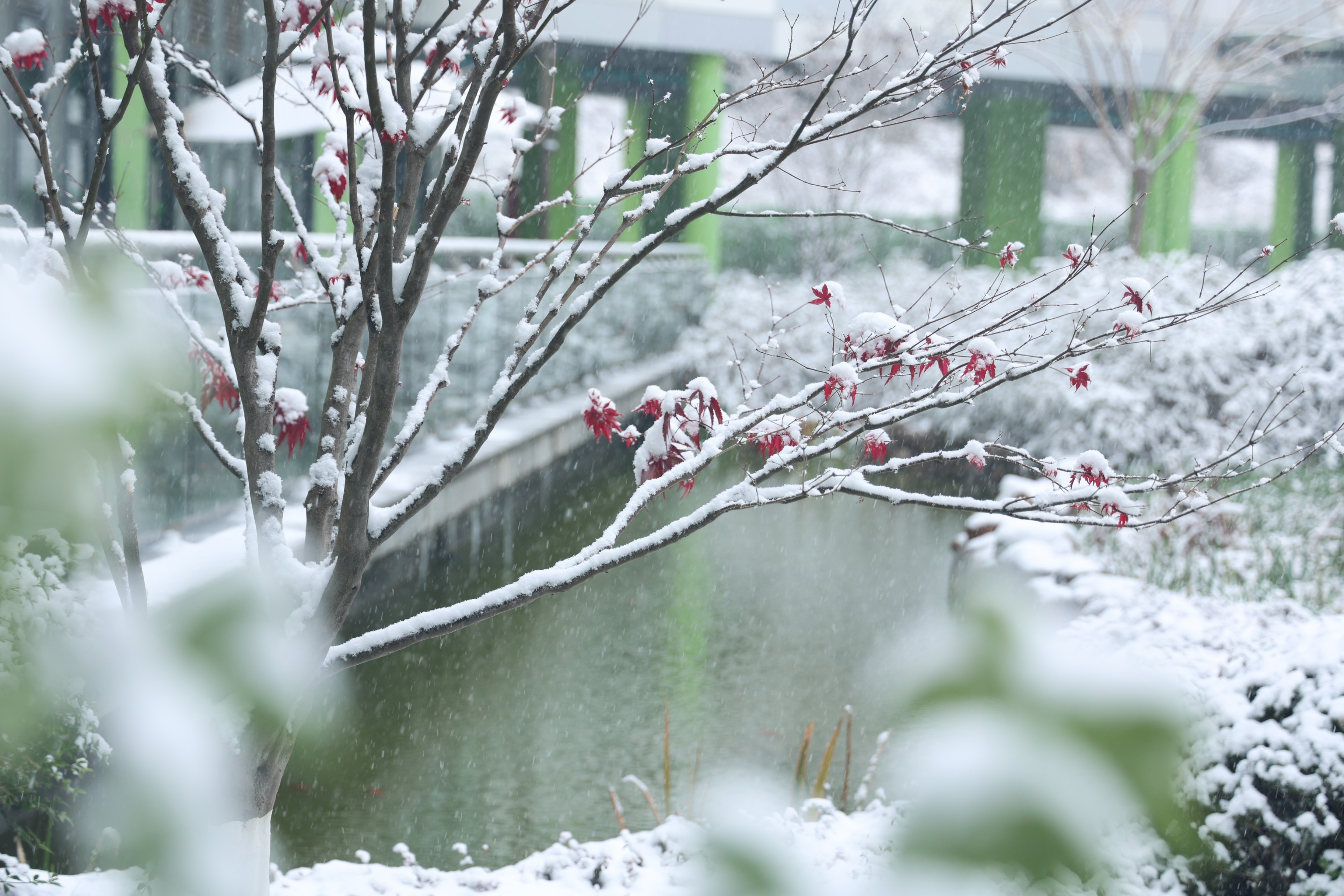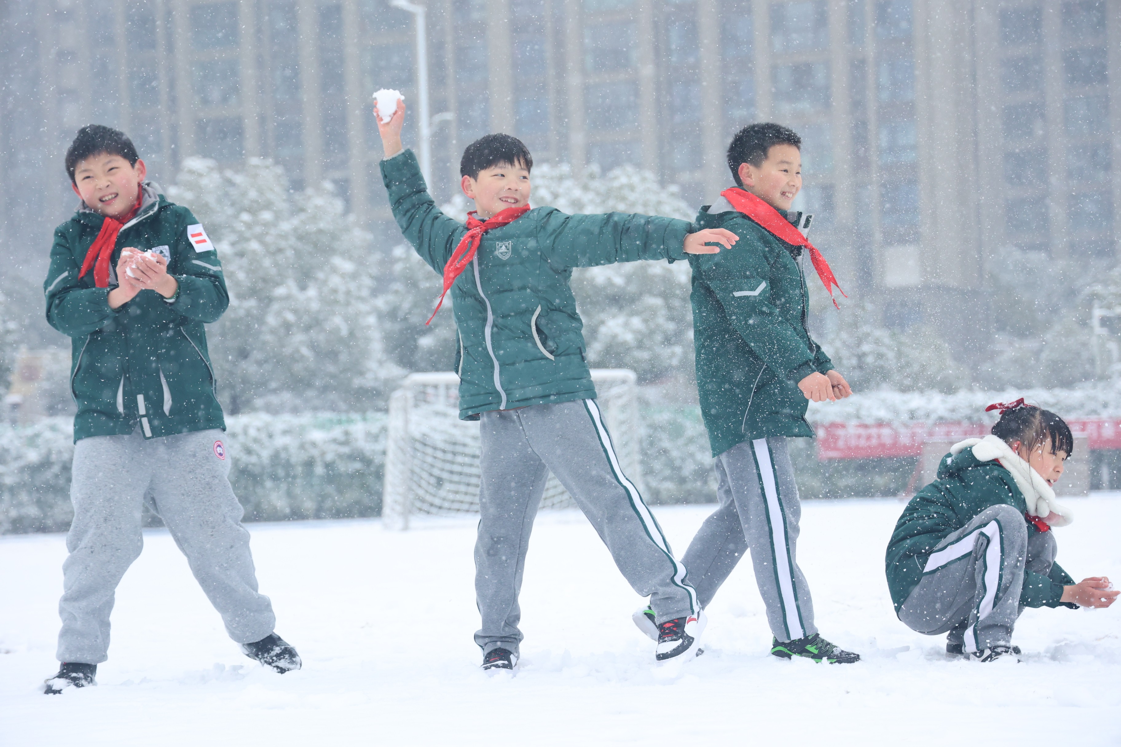 雪白的校園裏生機勃勃