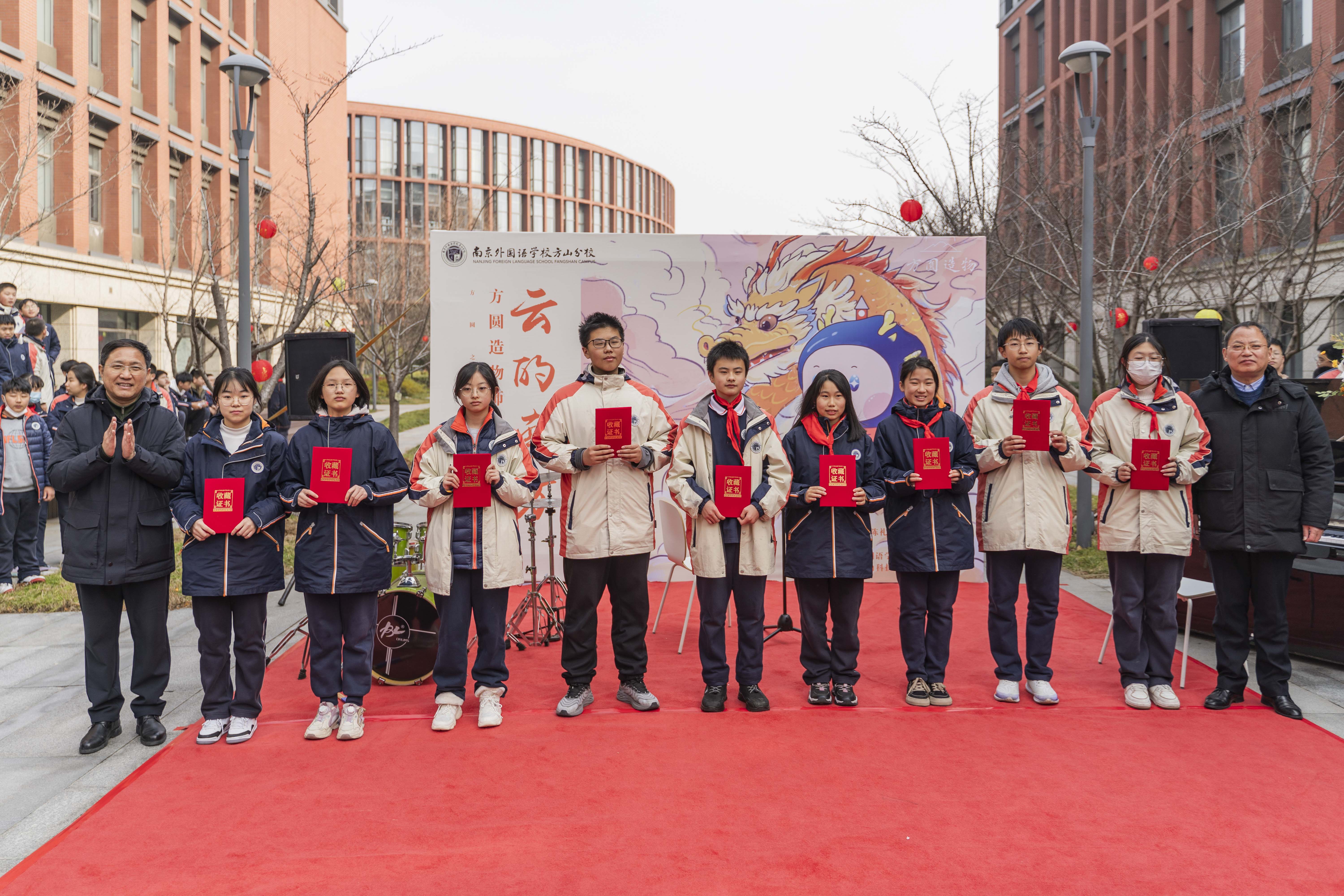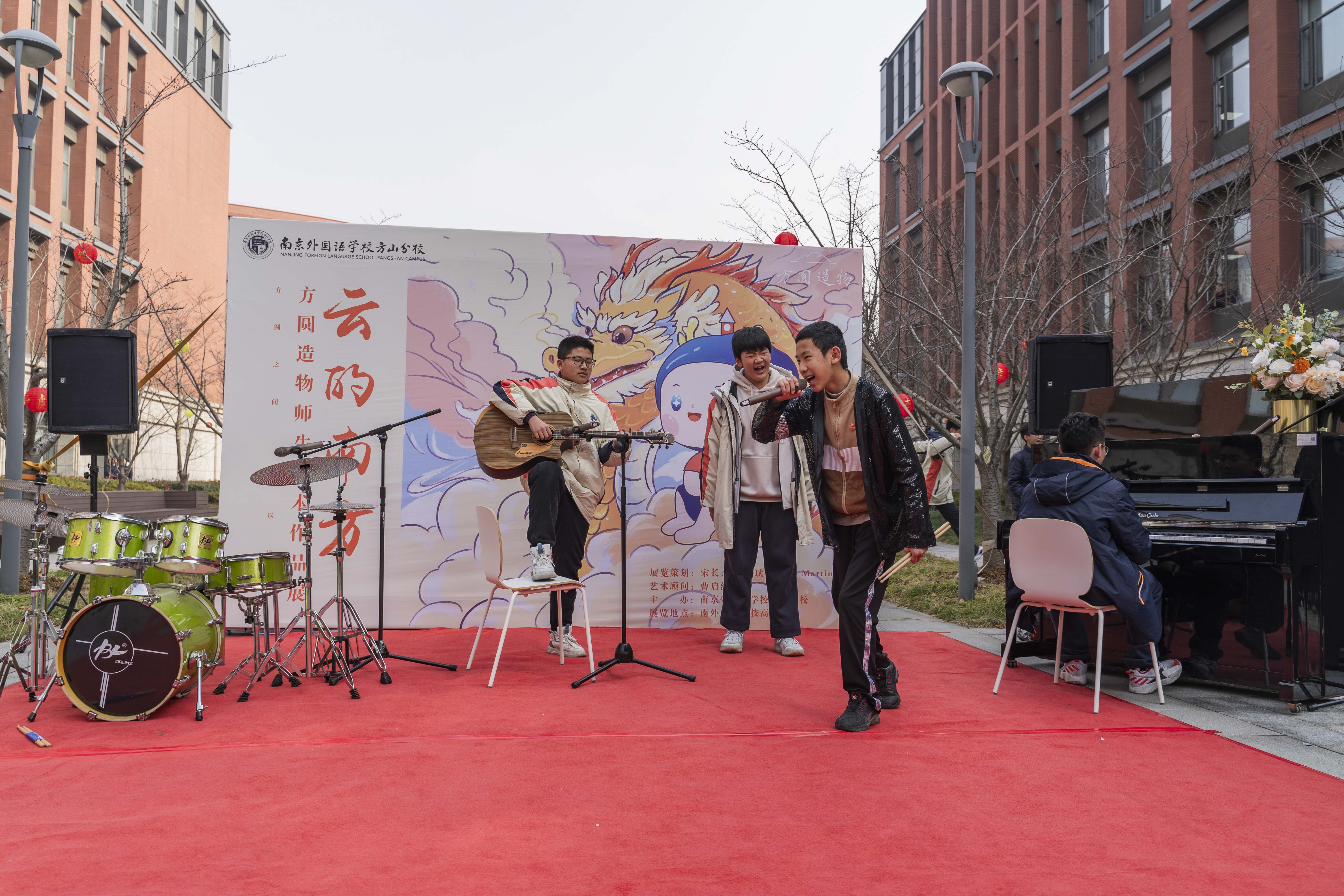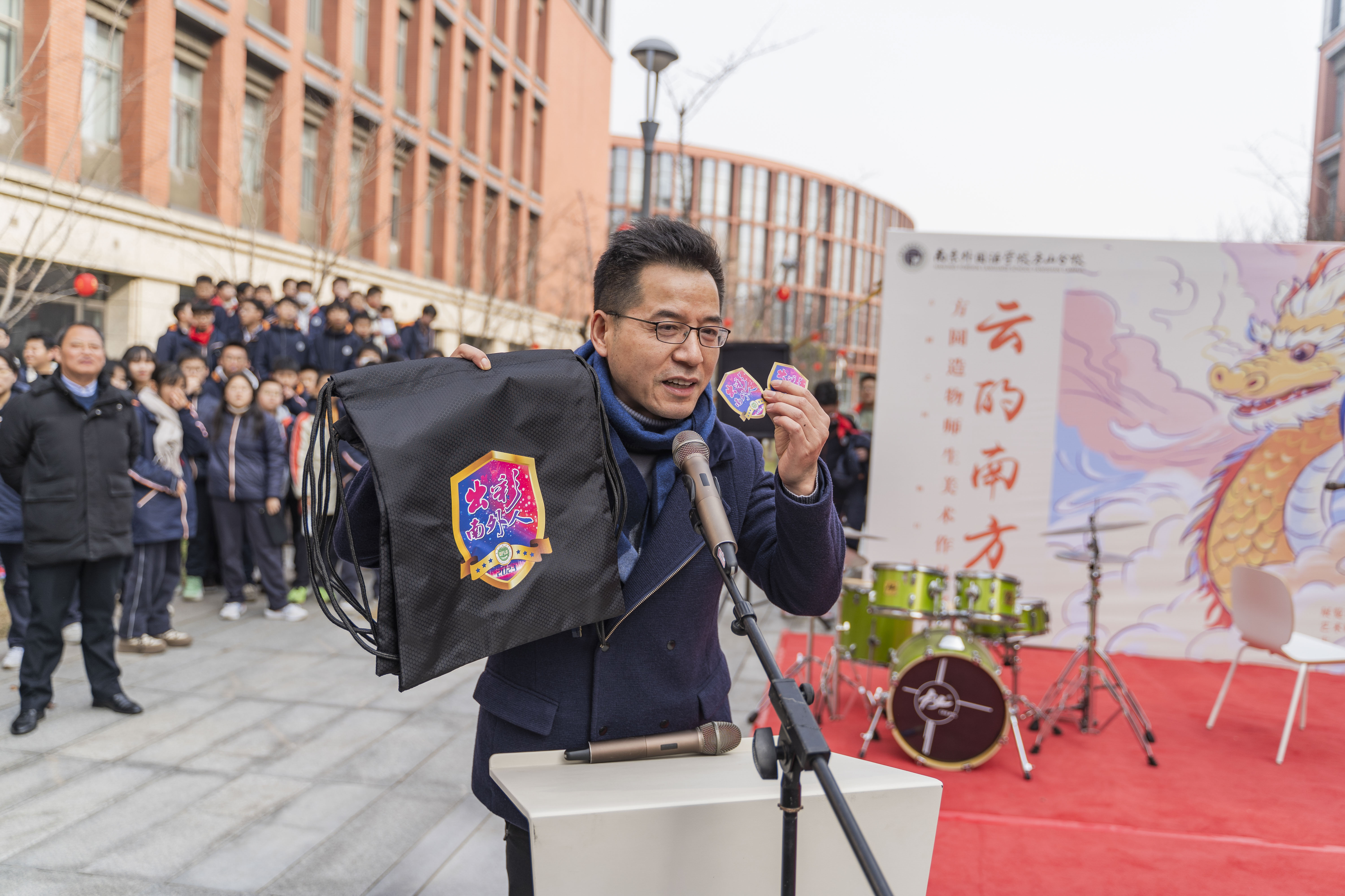 1月9日,南京外國語學校方山分校開展“雲的南方”方圓造物師生美術作品展。一係列圍繞方山石、墨竹等自然主題創作的水墨畫、書法、紮染、篆刻等藝術作品在科技高中庭院內集中亮相。此外,方圓造物校園文創再次上新,學校吉祥物“南小方”不僅迎來一歲生日,而且“換”上了師生們為他精心設計的新年新衣,更顯滿滿的年味兒。
