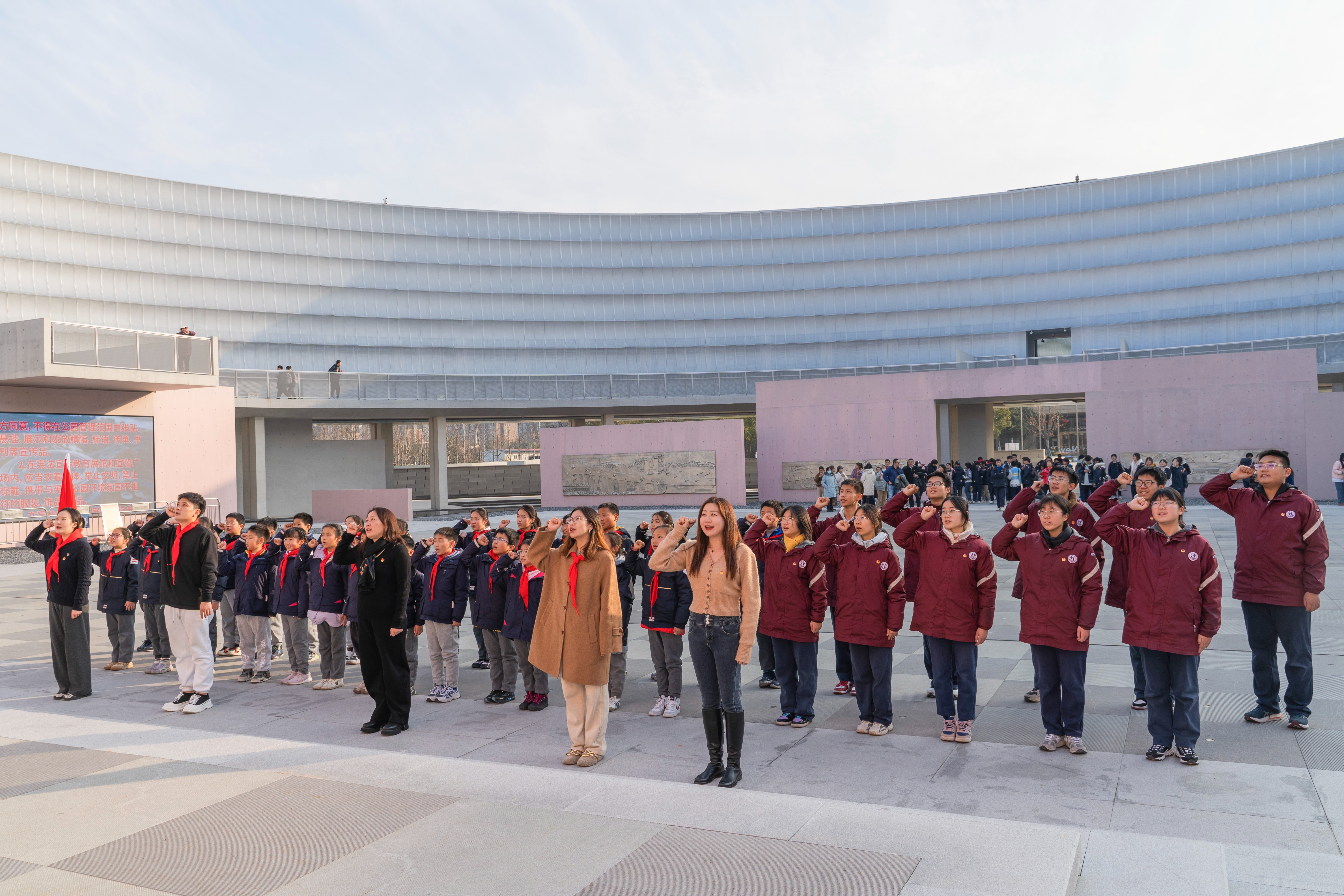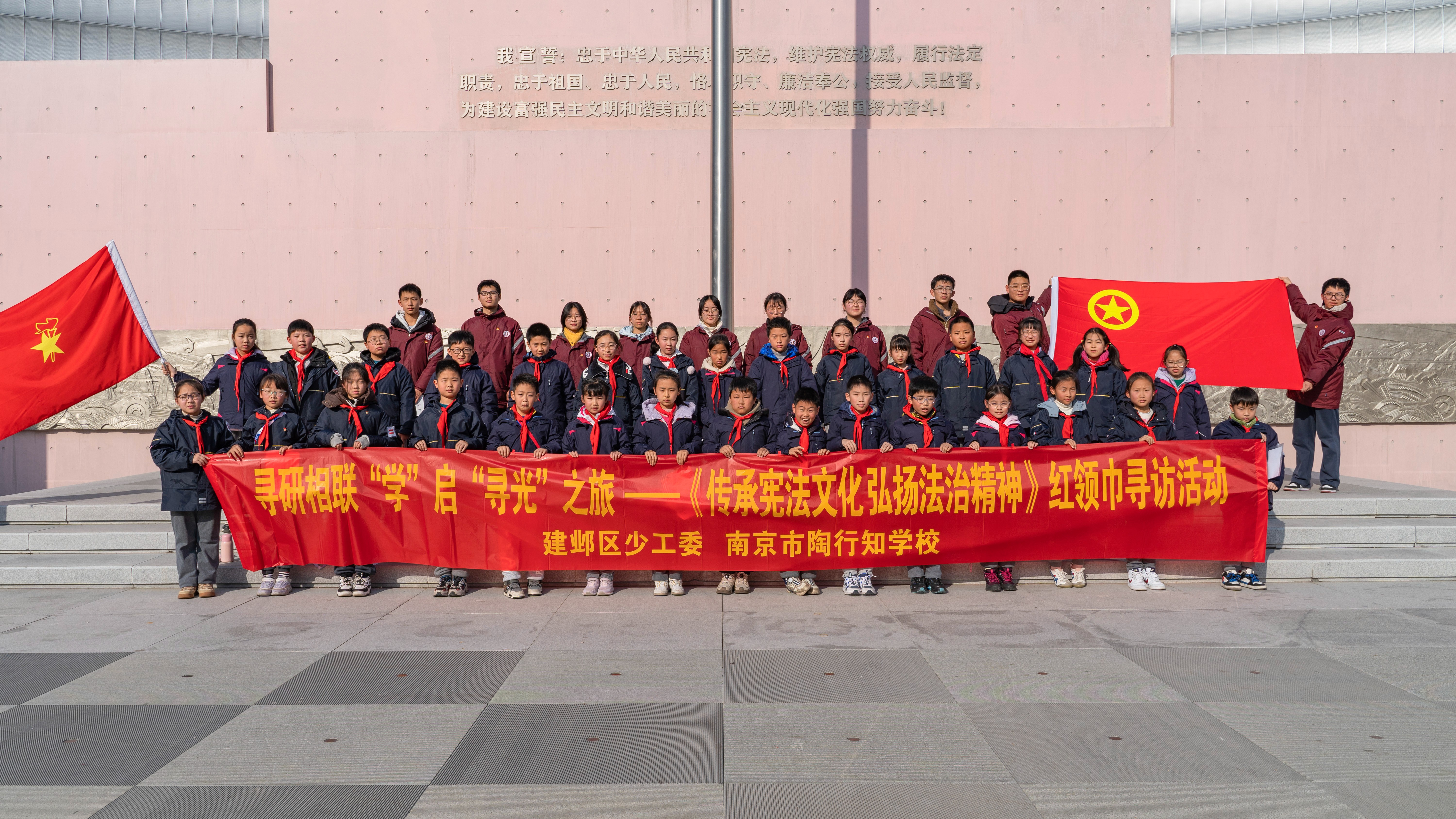 為大力加強青少年憲法學習宣傳,強化憲法意識,弘揚憲法精神,1月5日下午,南京市陶行知學校40名少先隊員、團員代表走進南京憲法公園,全力加強學生憲法教育,用憲法幫助學生扣好人生“第一粒扣子”。本次活動由南京市陶行知學校黨總支、團委、少工委和南京市同心圓三八紅旗手工作室聯合開展。