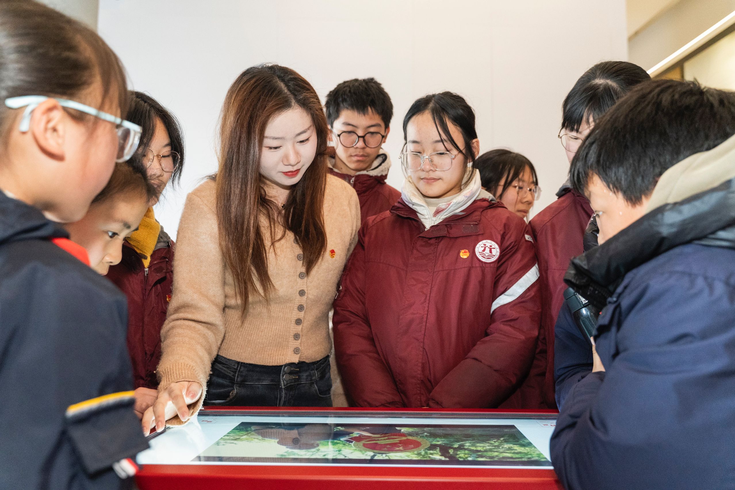 同學們認真聆聽每個版塊的曆史故事,觀看講解視頻,在濃厚的憲法宣傳氛圍中,沉浸式感受中國共產黨帶領中國人民尋憲、製憲、修憲、奉憲的偉大曆史進程,深刻感受到憲法為國、為民護航的幸福感和安全感。