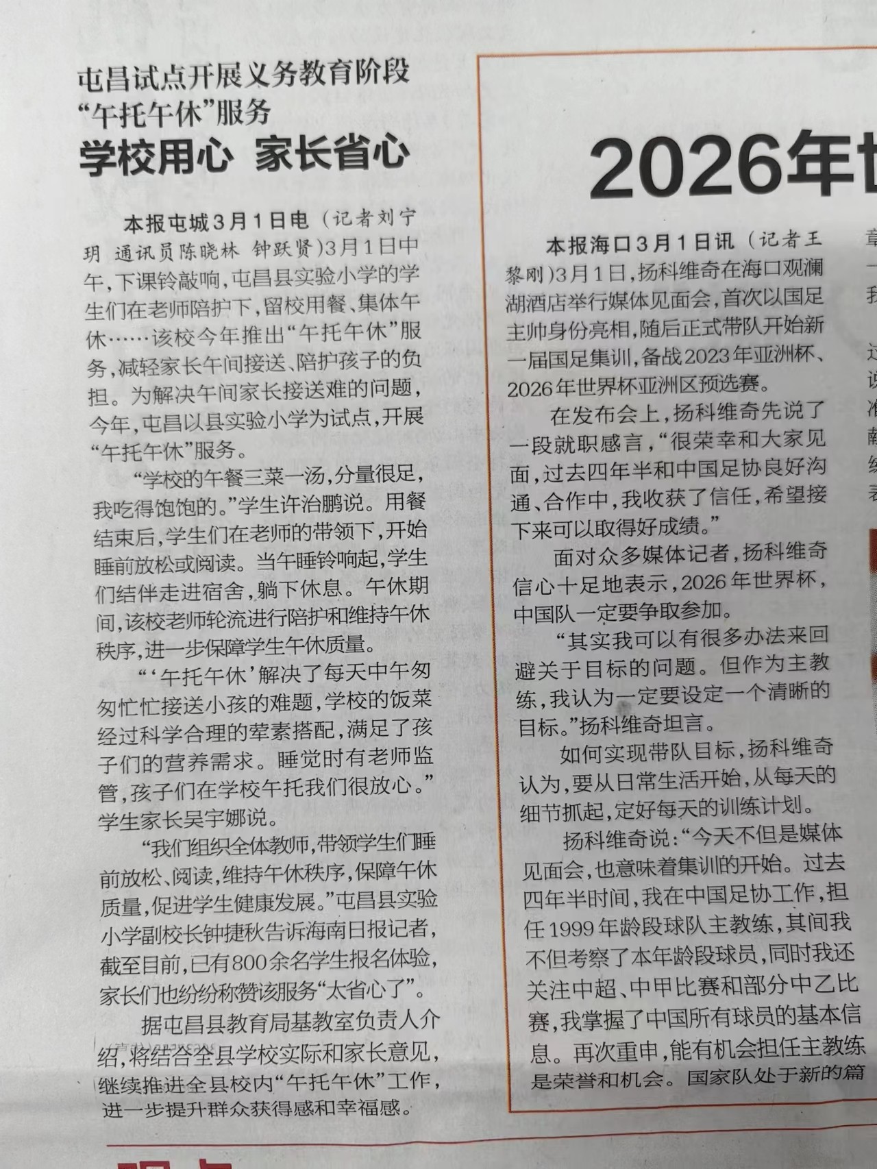 2018年3月至今,常州市武進區實驗小學先後派出了4任校長,6批骨幹教師,紮根屯昌。他們帶著武進教育人的擔當和武實小的上善情懷,從0到47項的校本課程的開發,從固態的班級授課製教學到全縣第一所走班製、積分製教學的變革,為海南省屯昌實驗小學850餘名學生提供了暖心、貼心、稱心的“午托午休”服務,一係列的創新舉措為屯實小的每一個孩子提供了公平而有質量的教育。
