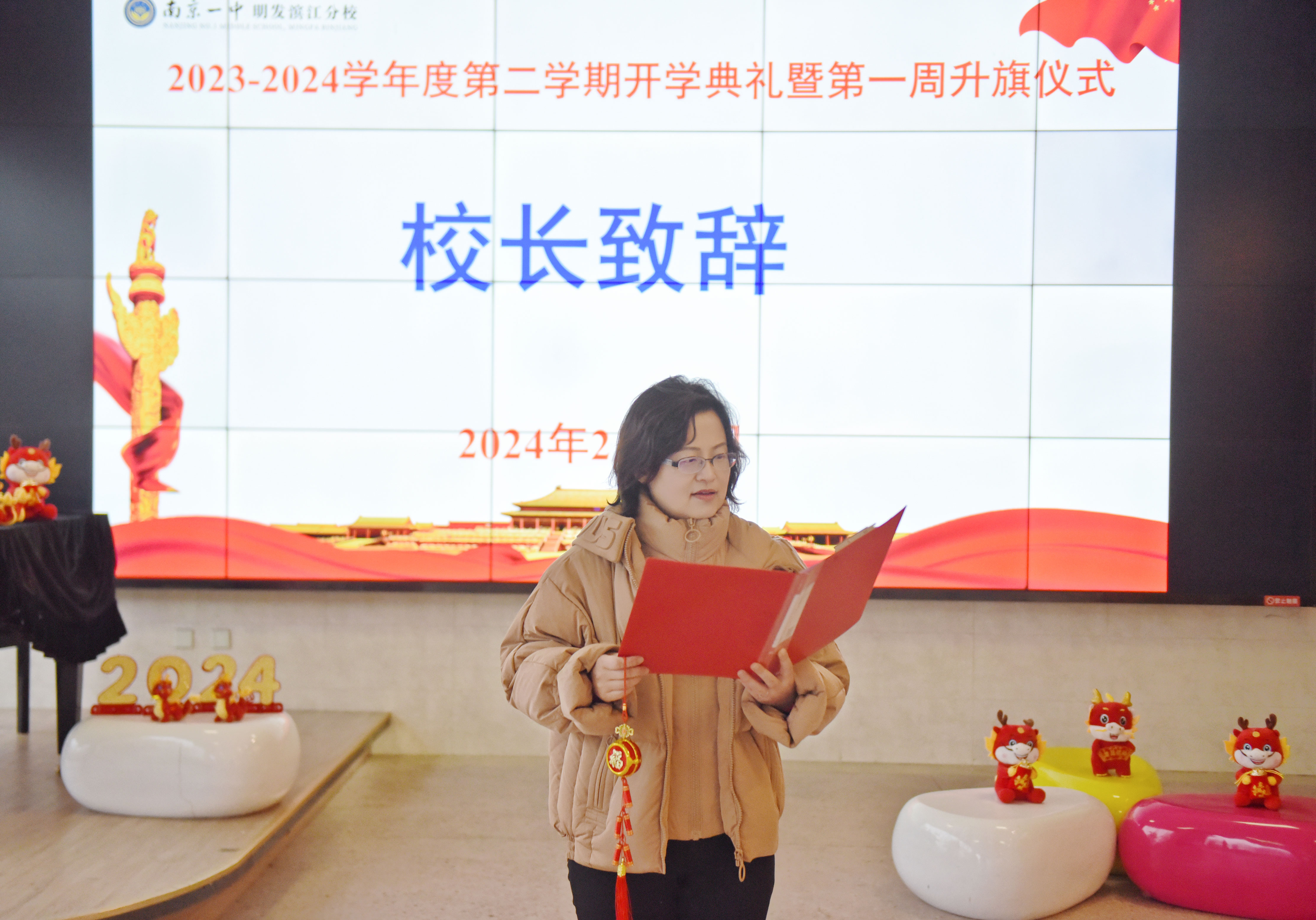 親愛的同學們,老師們,今年是龍年,龍在我們的文化裏,就是吉祥、力量與智慧的象征,龍年要有新氣象,我們要像龍一樣直麵挑戰,汲取龍的智慧,提高自己的素質與能力,成為一個更優秀的人。讓我們在龍年,一起努力,牢記大愛少年的四大內涵,做一個健康的人,友善的人,優雅的人,能承擔責任的人,讓大愛少年的精神陪伴我們的一生。