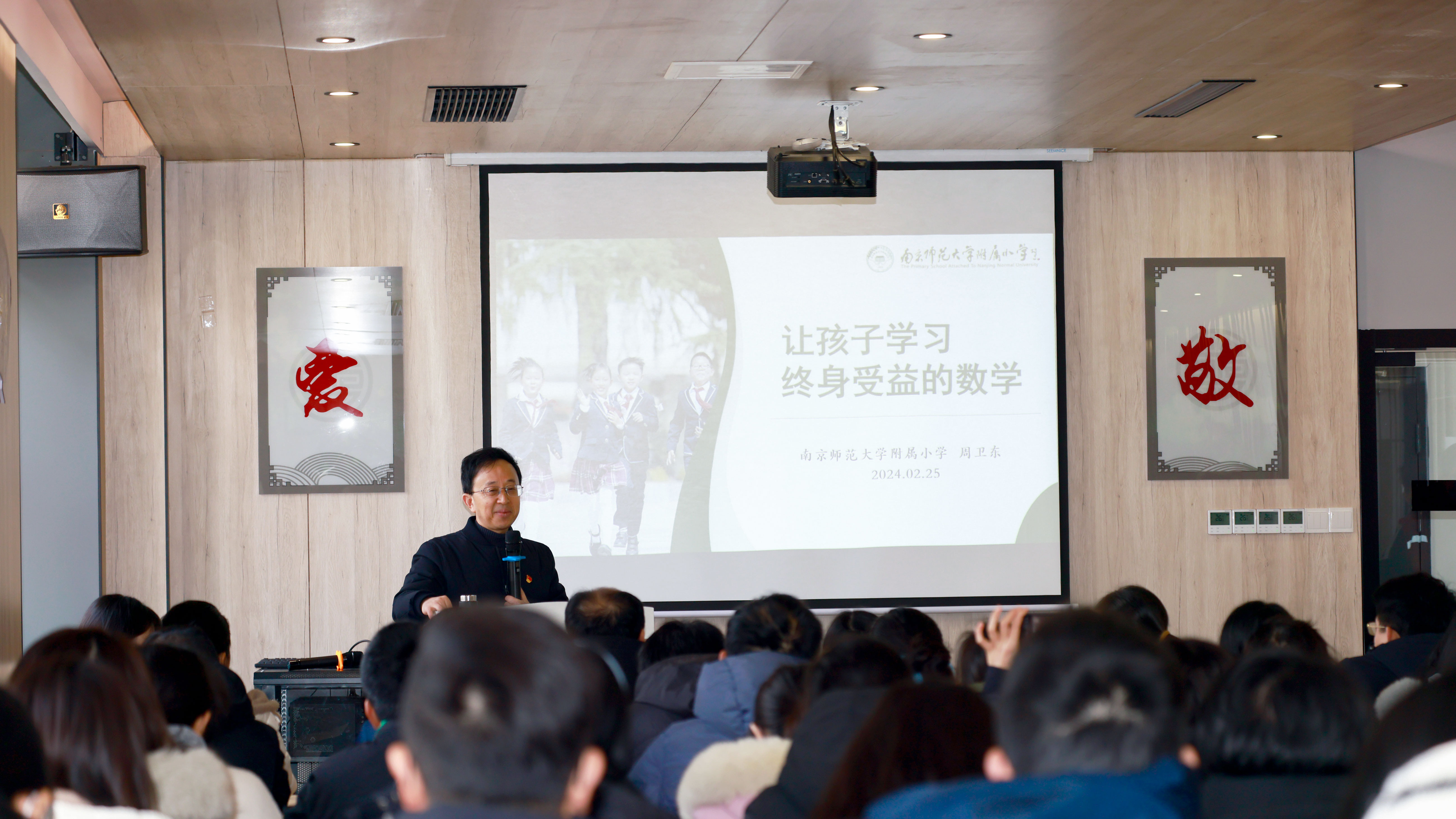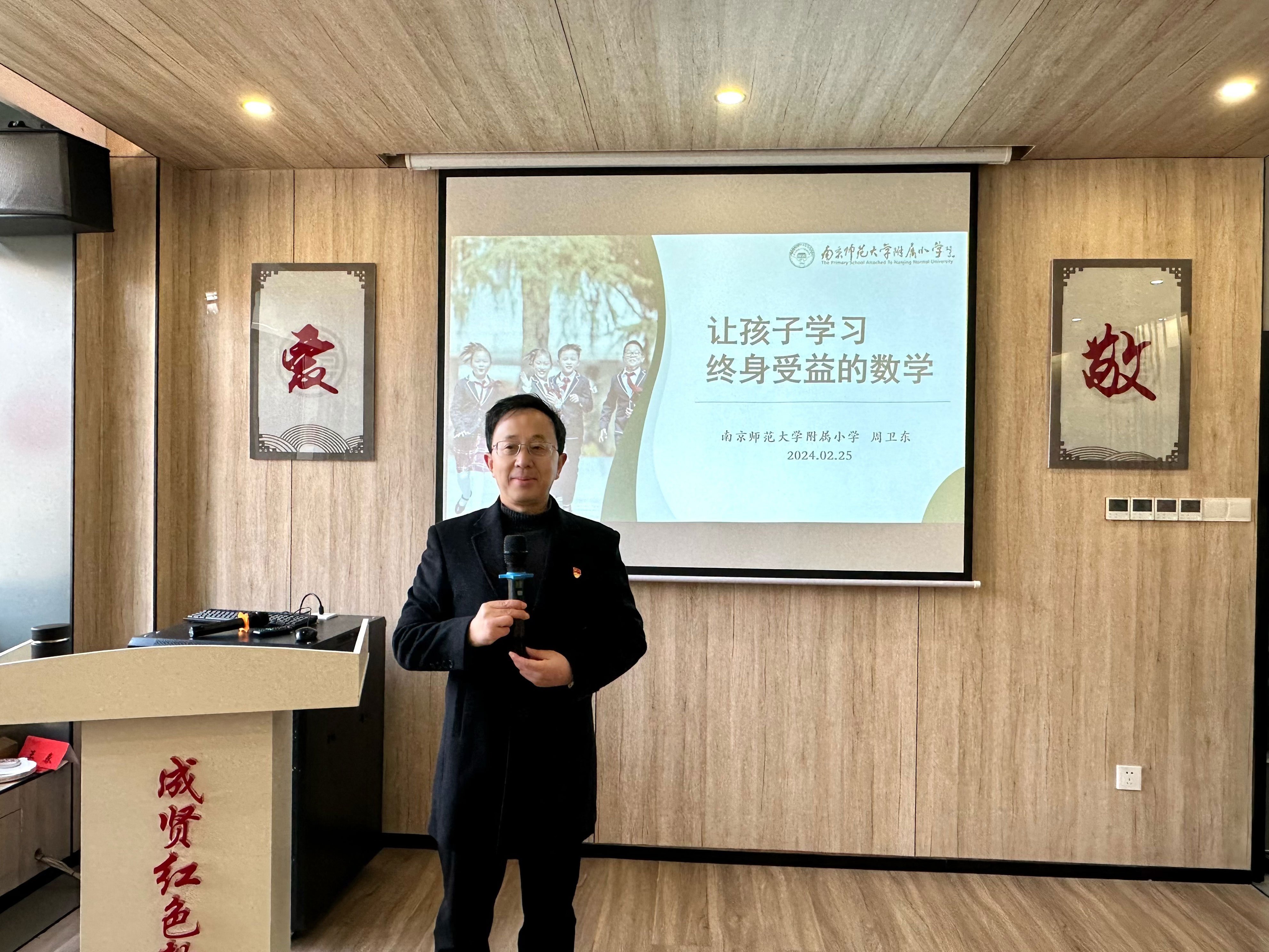 2月25日上午,南京市玄武區成賢街社區活動中心三樓會議室座無虛席,南京師範大學附屬小學黨總支書記、江蘇省數學特級教師、正高級教師周衛東以《讓孩子學習終身受益的數學》為主題,給社區百餘名家長帶來精彩的教育講座。據了解,該講座為“名師進社區,校家社協同育人”係列活動。近年來,南師大附小持續深化“愛的教育”精神,與玄武區成賢街社區成立了共育基地,將“童心母愛”教育思想輻射到更大的範圍,形成了多維聯動的共育生態。